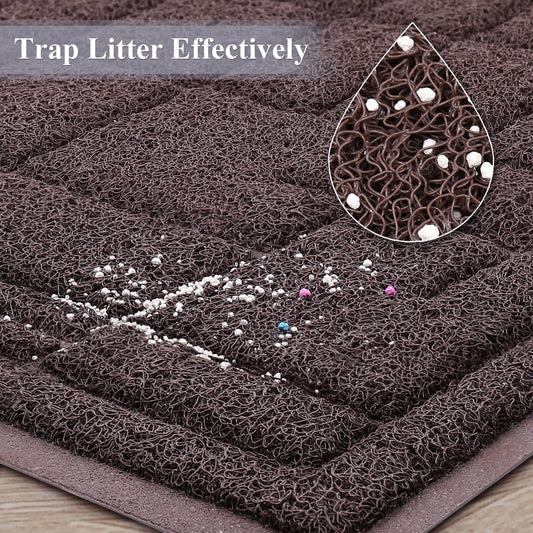 Cat Litter Mat for Catching Litter, Cats Litter Rug Catcher, Waterproof Pet Feeding Food Mats for Kitty Dog Small Animals, Non-Toxic Safety for Pets, Brown-Modern Pattern